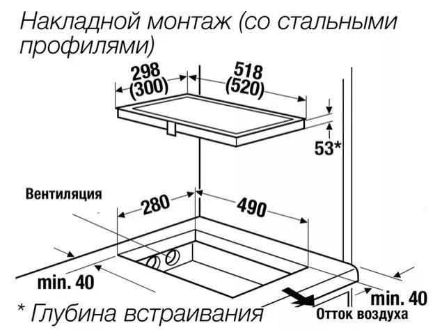 Размеры ниши для встраивания (Ш×Г): 28 × 49 см