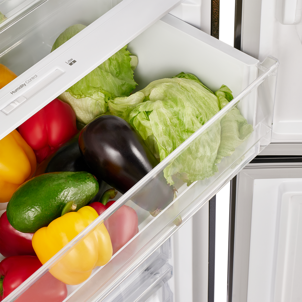 За равномерное распределение холода отвечает динамическое охлаждение: специальный вентилятор поддерживает оптимальные условия на каждой полке и в любом отделении. Внутреннее пространство продумано для гибкой настройки — высота полок и отсеков регулируется, полки выполнены из закаленного стекла, а комплектация включает подставку для яиц и форму для льда.