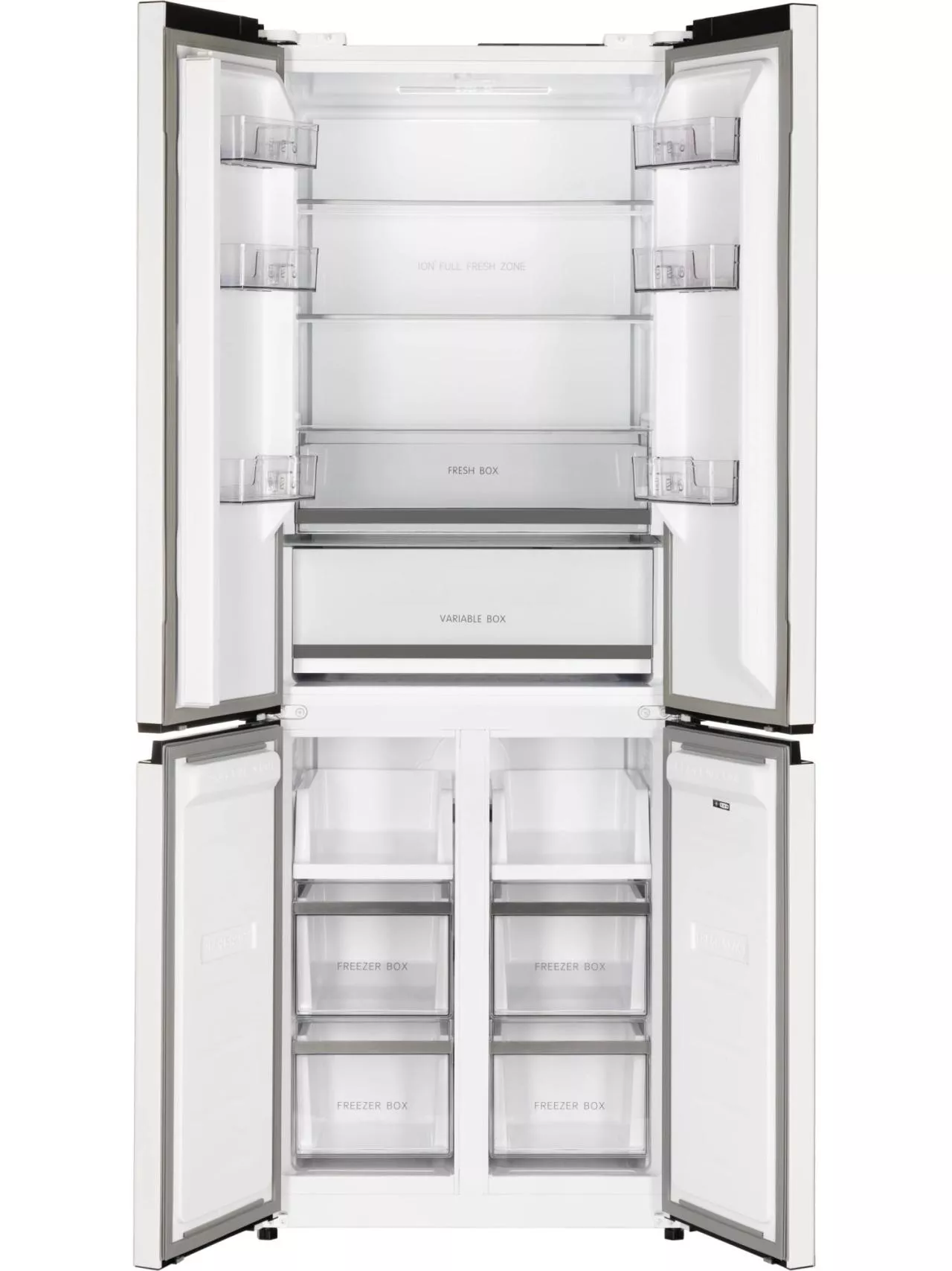 Четырехдверный холодильник NORDFROST RFQ 440 NFGW с инверторным компрессором, автоматической системой охлаждения No Frost и электронным управлением — отличное решение для большой семьи. Модель сочетает в себе утонченный дизайн и функциональность. Прибор, выполненный в стильном белом цвете, имеет высоту 192 см и ширину 703 мм. Общий объем 417 литров дает возможность хранить большое количество продуктов.
