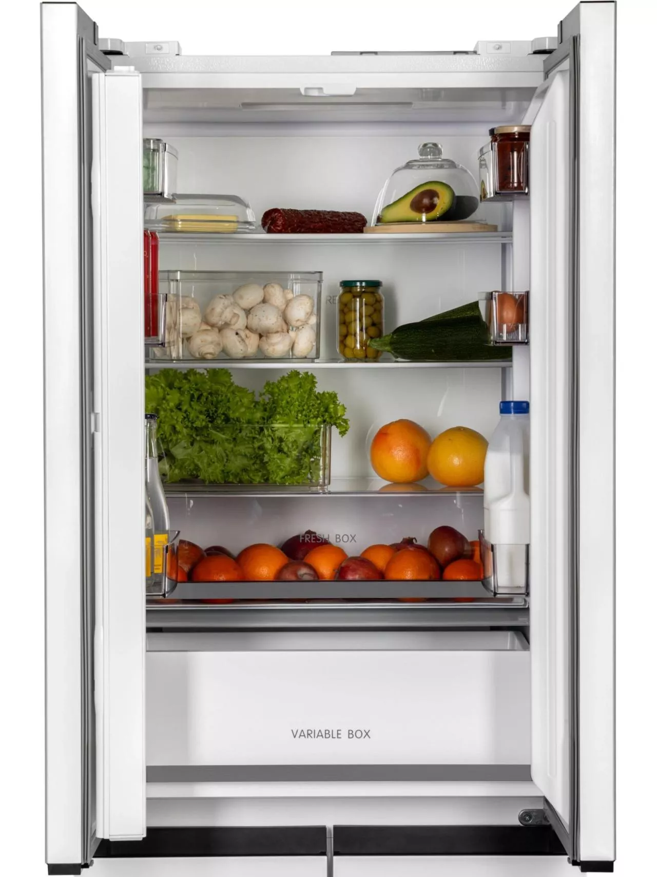 Глубина холодильника 60 см позволяет свободно встроить его в кухонный гарнитур. При этом необходимо обеспечить всего 6 мм минимального расстояния от техники до кухонных шкафов. В модели предусмотрена система нижнего отвода тепла, за счет которой стенки соседних шкафов не будут нагреваться. Благодаря обновленной дверной конструкции и специальным петлям двери холодильника открываются на 90 градусов, обеспечивая удобный доступ к продуктам.