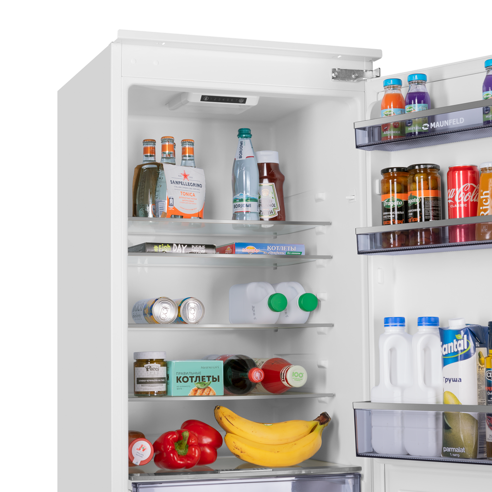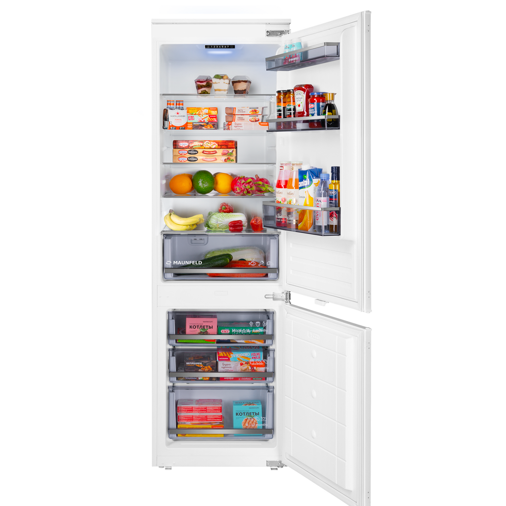 Встраиваемый холодильник с инвертором MAUNFELD MBF177SWGR Inverter — практичное решение для аккуратной интеграции техники в кухонный гарнитур и комфортного повседневного использования. Модель легко вписывается в высокий шкаф и помогает поддерживать порядок внутри камер.