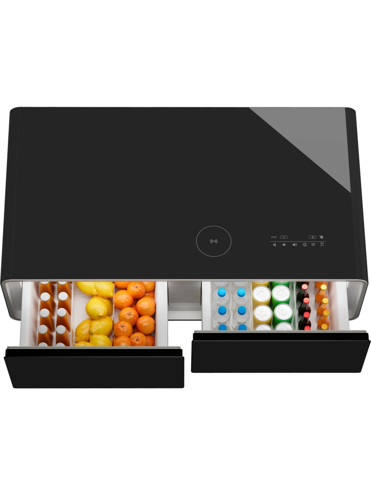 Холодильный барный центр – это больше, чем журнальный стол: модель совмещает функции холодильника, музыкального центра, зарядной станции и источника питания для гаджетов.