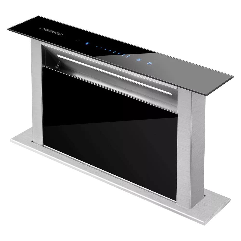 Кухонная вытяжка встраиваемая в столешницу MAUNFELD Prestige 60 чёрный — это эффектное решение для современных кухонь, где ценят чистые линии и порядок. При работе она элегантно поднимается над поверхностью, а по завершении снова скрывается в столешнице, освобождая полезное пространство и сохраняя общий минималистичный вид.