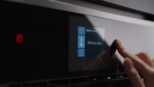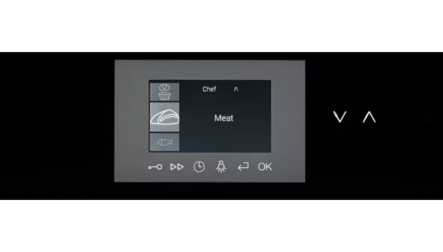 • Управление. Электронная система с сенсорными переключателями Full Touch Control и TFT-дисплей диагональю 3,9 дюйма с графическими и текстовыми полями. На дисплее отображается фактическая и рекомендуемая температура, а также время до окончания приготовления.