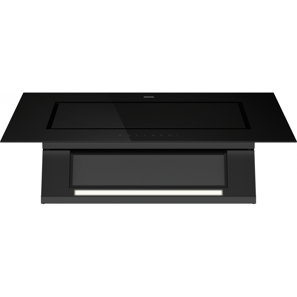 Наклонная конструкция дополняется LED-лентой с регулировкой яркости и теплоты света, чтобы равномерно подсветить варочную поверхность. В комплекте уже предусмотрены угольный фильтр и увеличенный жироулавливающий фильтр, а минимальная высота монтажа 45 см упрощает интеграцию в кухонный проект.