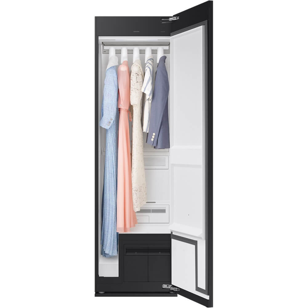 Паровая гардеробная шкаф-стойка Samsung DF24CB9900CRLP AirDresser — это флагманская модель серии, представляющая собой универсальную станцию для профессионального ухода за одеждой. Устройство с зеркальной дверцей и увеличенной вместимостью сочетает технологию теплового насоса, мощную паровую систему Dual JetSteam и интеллектуальное управление для освежения, дезинфекции, деликатной сушки и разглаживания одежды без необходимости химической чистки.