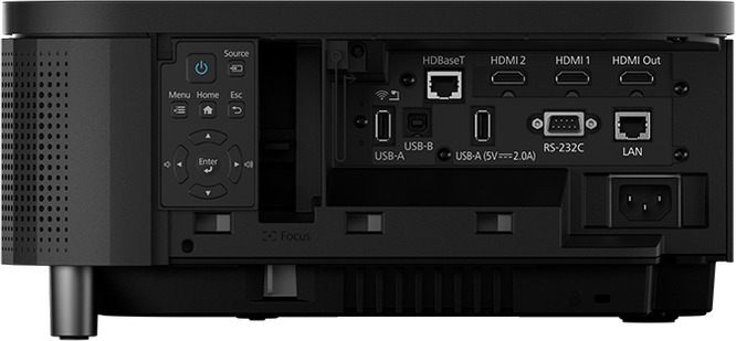 Интерфейсы: USB 2.0-A (2x), USB 2.0 type B (только для обслуживания), RS-232C, интерфейс Ethernet (100 Base-TX / 10 Base-T), беспроводная локальная сеть IEEE 802.11 a /b/ g / n / ac, вход HDMI (2x), выход HDMI, HDBaseT, Miracast