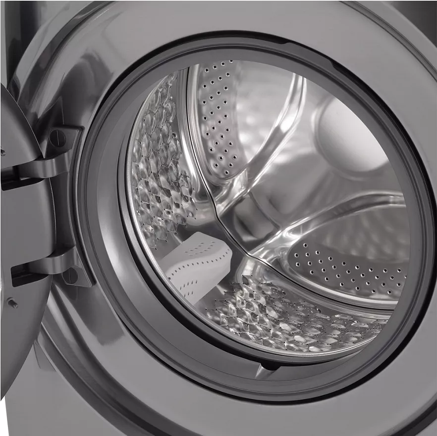 Она также оснащена функцией отложенного старта до 24 часов, что позволяет запланировать стирку на удобное для вас время. Материал барабана — нержавеющая сталь, а бак выполнен из полимерного материала, что обеспечивает долговечность и надежность устройства.