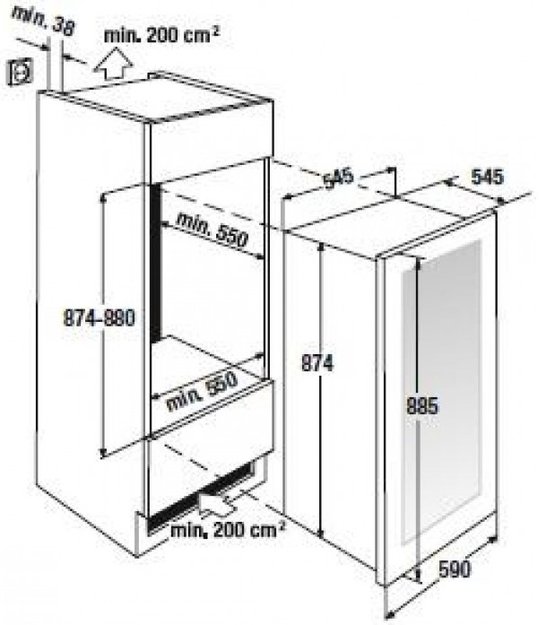 • Тип: встраиваемый винный шкаф, двухтемпературный