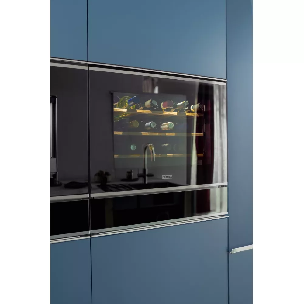 Встраиваемый холодильник для вина FMY 24 WCR N XS бренда FRANKE создан для аккуратного хранения вашей коллекции в стабильных условиях и с эстетикой премиального кухонного пространства. Он органично вписывается в нишу 45 см и подчеркивает интерьер стеклянной дверцей в рамке из нержавеющей стали.