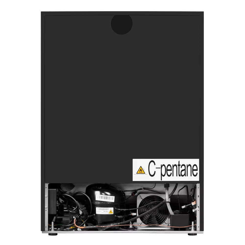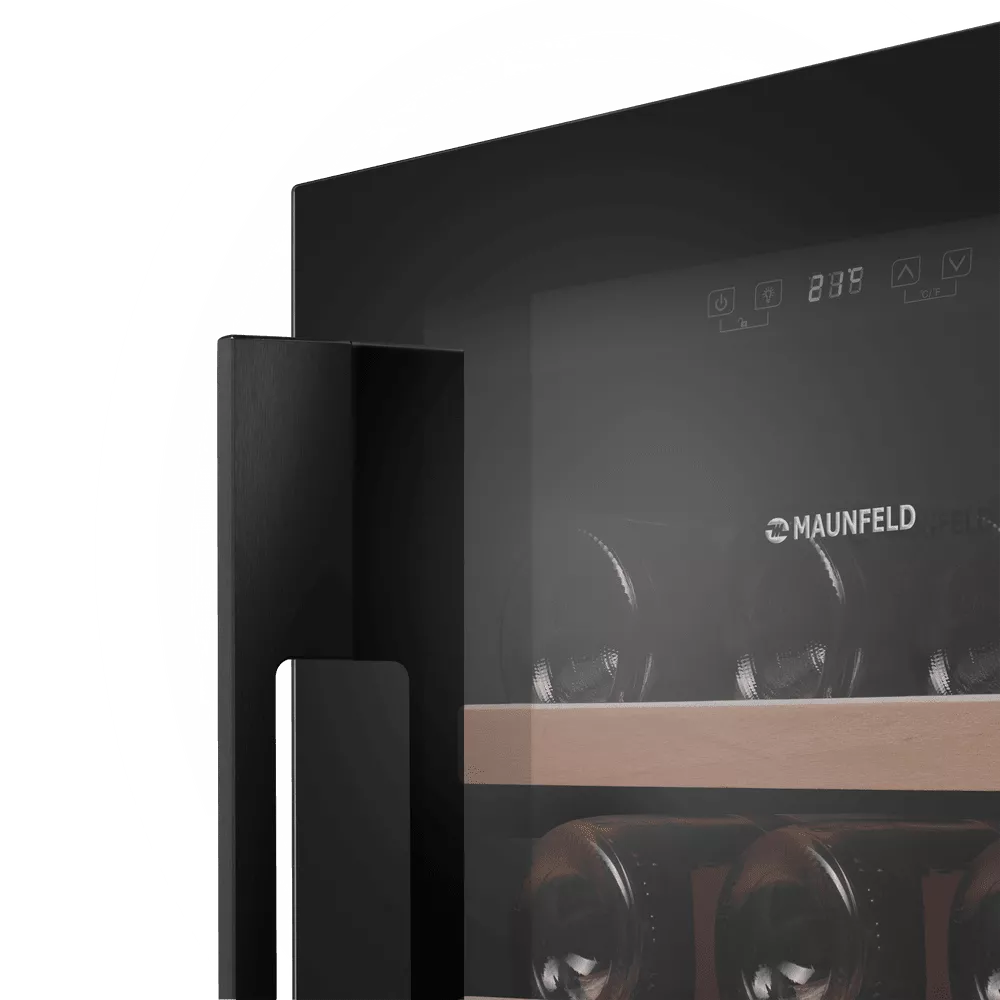 Компрессорная система с вентилятором равномерно распределяет холодный воздух, а дверца из тонированного стекла с УФ-защитой надёжно сохраняет качество вина. Внутренняя LED-подсветка делает коллекцию стильной и заметной.