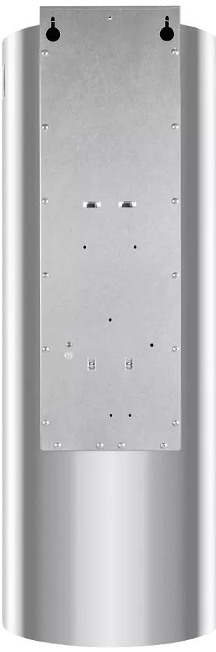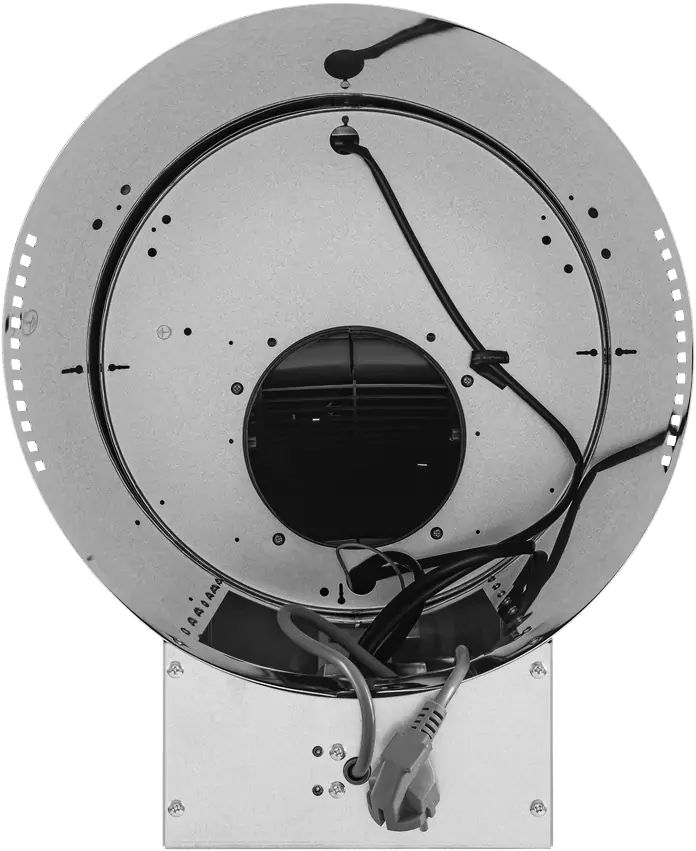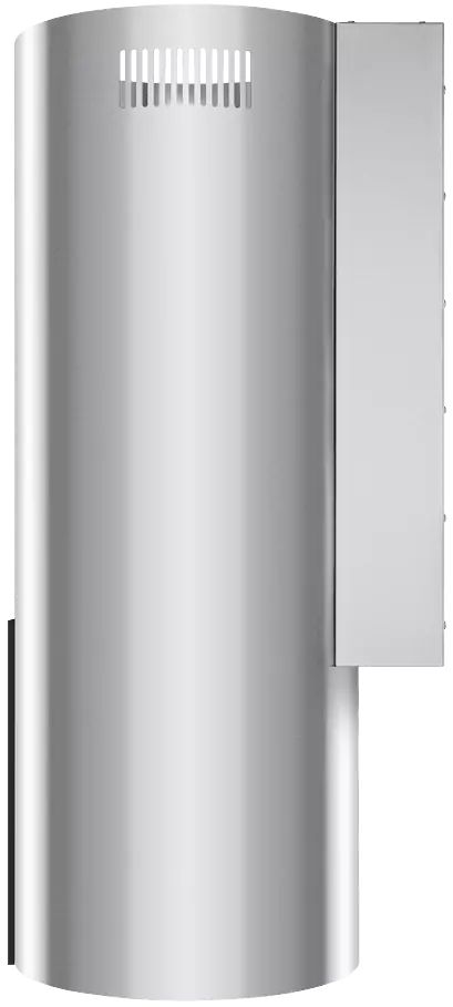 Корпус цилиндрической  формы, выполненный из нержавеющей стали с термостойким покрытием, устанавливается на стену над поверхностью плиты. Алюминиевый многослойный жироулавливающий фильтр находится в нижнем торце вытяжки.
